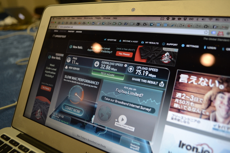 「おんやど恵」さんは開発合宿に力を入れているだけあって、開発環境がかなり充実していました。48時間いつでも好きに使って良い会議室が一部屋(10人が余裕を持って座れる広さ)いただけて、大量の電源タップとホワイトボードが設置されていました。更に、無線LAN は高速かつかなり安定していて、ネットワーク関係でトラブルになる事は全くありませんでした。実測値で常時下り 30MBps 出ていたので、開発するには充分だと思います。