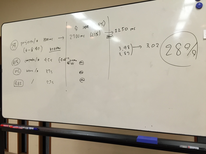 今回の開発合宿は、「きちんと時間を取らないと取り組めない事」をやりたいというモチベーションから始まりました。取り組む候補としてはマイクロサービス化を進める事や Rails のバージョンを上げる事、RabbitMQ の様な新しいミドルウェアを試してみる事など色々ありましたが、最終的には全てひっくるめて「Wantedly のサイトを 20%スピードアップする」という大きな目標を立てました。