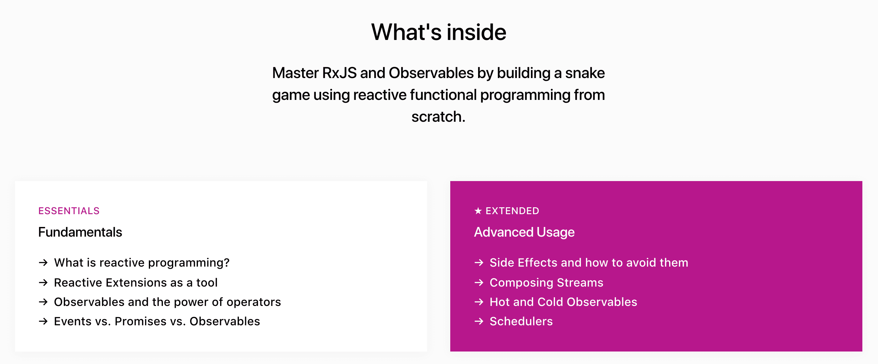 By the title of this post, you might have guessed that this is not everything we have to share today. Many of you might have noticed that Angular embraces functional reactive programming paradigms using RxJS. We see many people struggling with this topic, which is why we decided to create a dedicated class just about that!