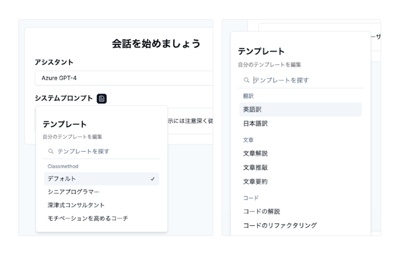 タスク別にチューニングしたプロンプトのテンプレートを共有する機能。 ユーザーがイチからプロンプトを設計する工程を省略し、即座に業務活用できるようにすることで生成AIの導入ハードルを下げる。