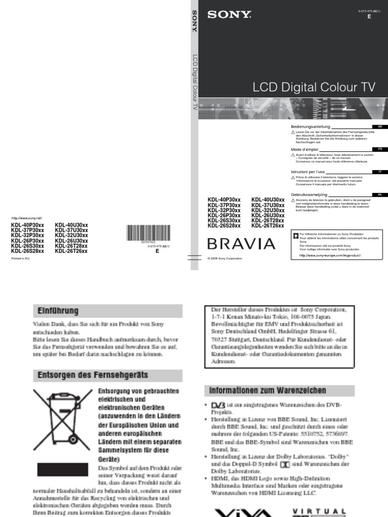 37P30xx/KDL-32P30xx/KDL-40U30xx/KDL-37U30xx/