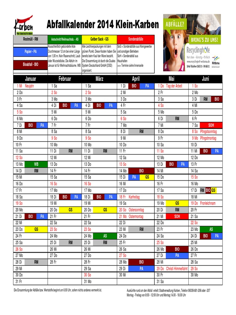 Ausknfte rund um den Abfall erteilt: Stadtverwaltung Karben, Telefon 06039/481-206 oder -207
