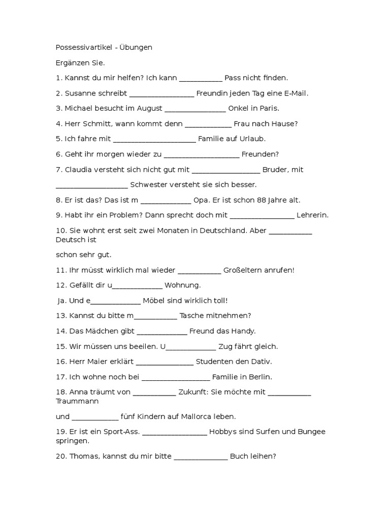 1. Kannst du mir helfen? Ich kann ____________ Pass nicht finden.