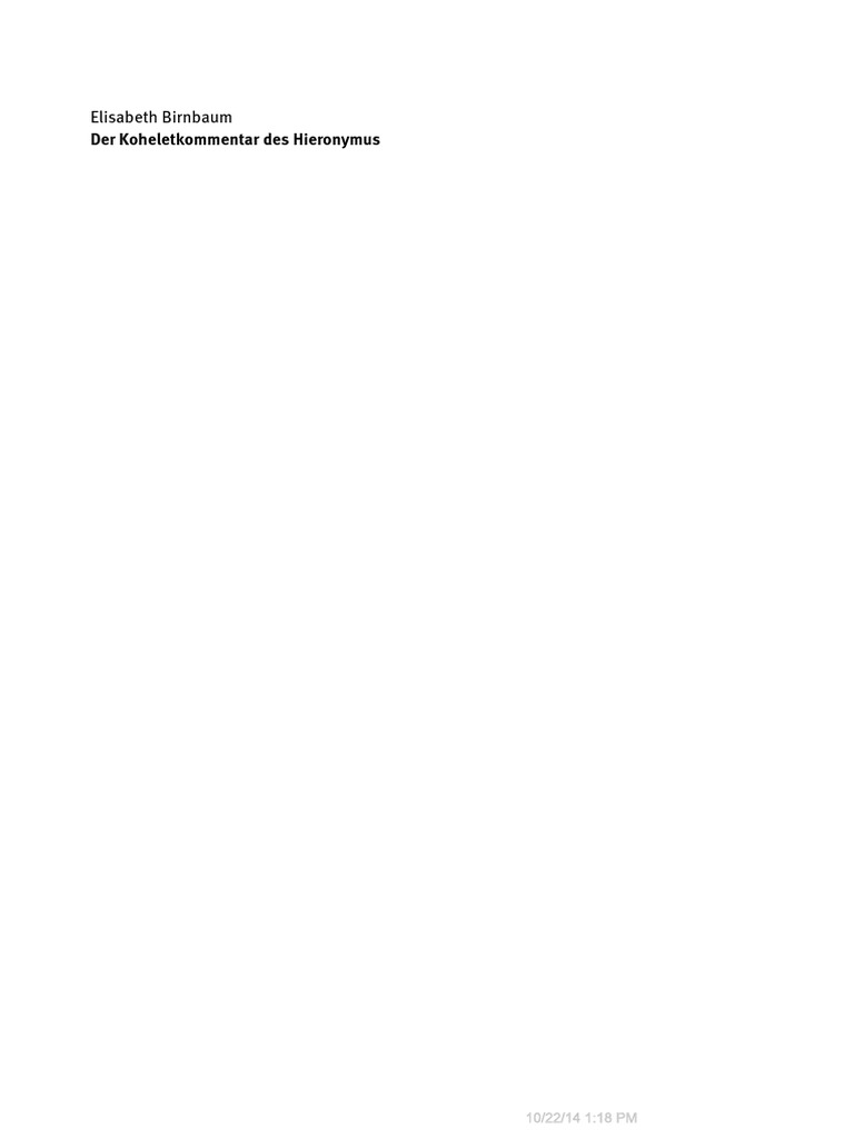 Stellung des Koheletkommentars im Schaffen des Hieronymus | 2