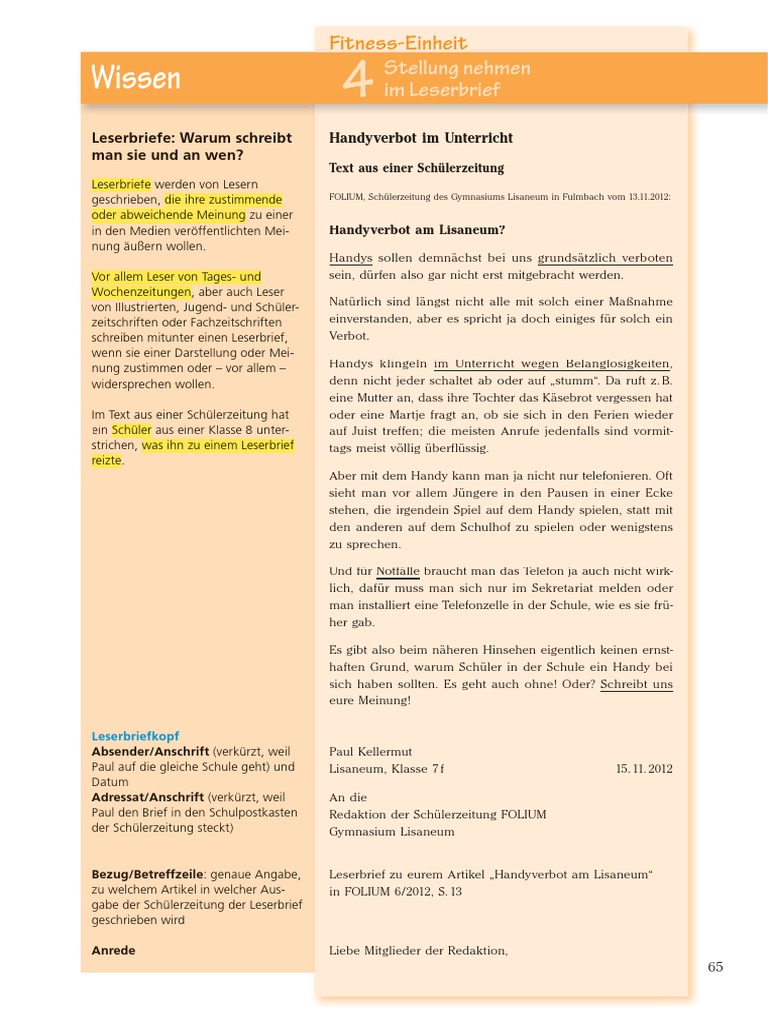 Einleitung, Nennung der Position ihr habt uns in eurem Artikel zum Thema Handyverbot