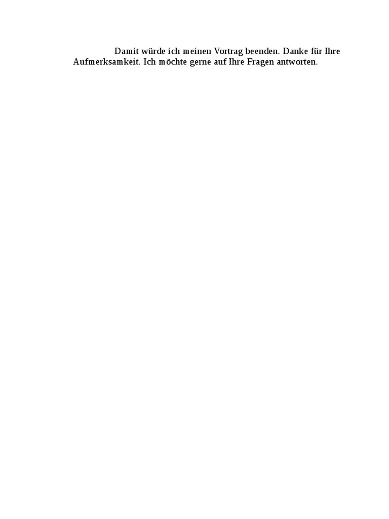 Der Redner beendet seinen Vortrag und bedankt sich für die Aufmerksamkeit des Publikums. Er bietet an, Fragen zu beantworten.