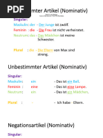 Geschlecht (das Genus), Numerus (Singular, Plural) und Kasus (Nominativ, Dativ, ...) an.