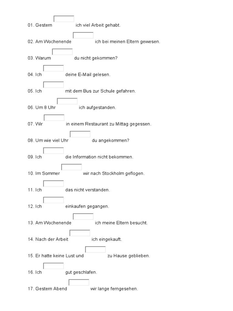 13. Am Wochenende ich meine Eltern besucht.