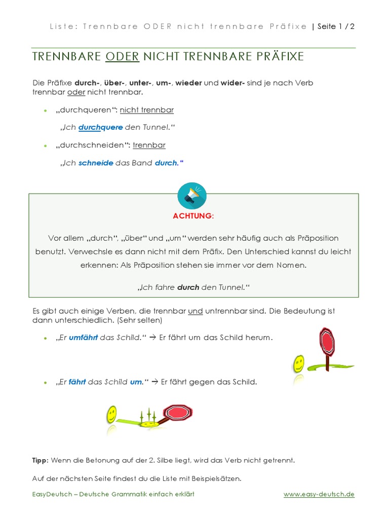 LISTE: TRENNBARE ODER NICHT TRENNBARE PRÄFIXE