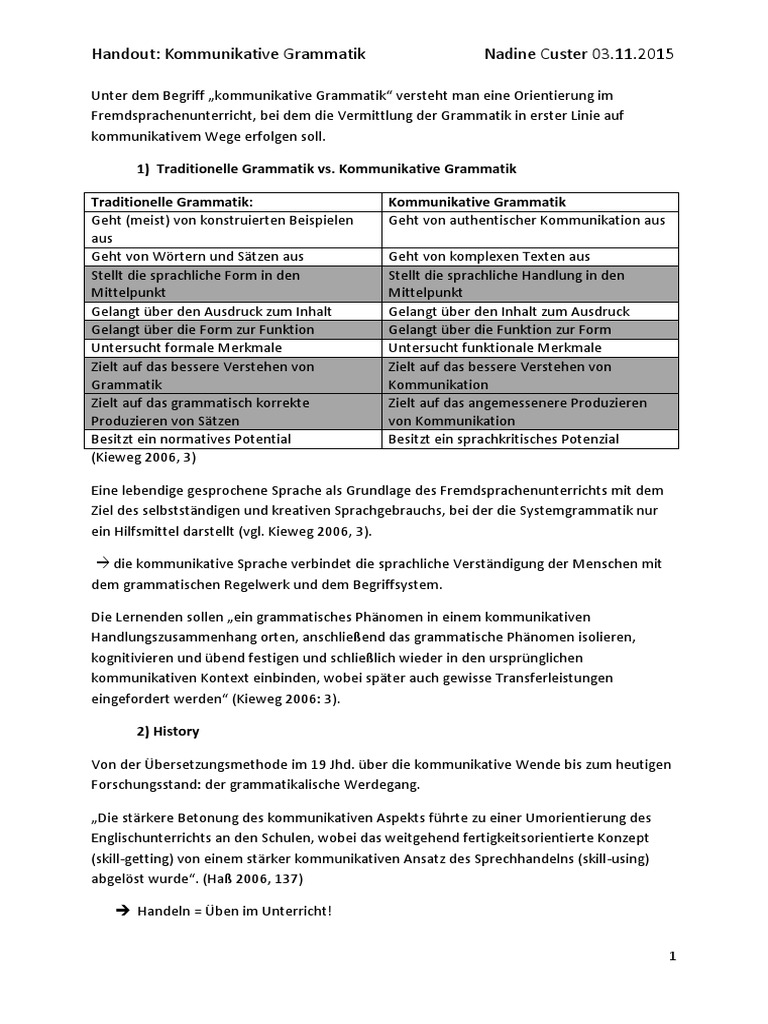 Handout: Kommunikative Grammatik Nadine Custer 03.11.2015