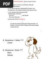 • Morpheme sind die kleinsten bedeutungstragenden sprachlichen Einheiten (Wortbausteine bei der Wortbildung)