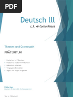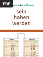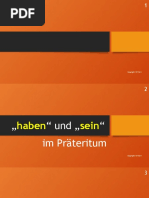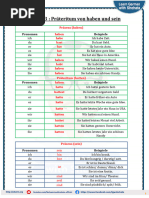 Das Dokument enthält Informationen zu den Verben "haben" und "sein" im Präsens und Präteritum in Deutsch. Es listet die Konjugationen dieser Verben in den verschiedenen Personen auf und gibt Beispiele für deren Gebrauch.