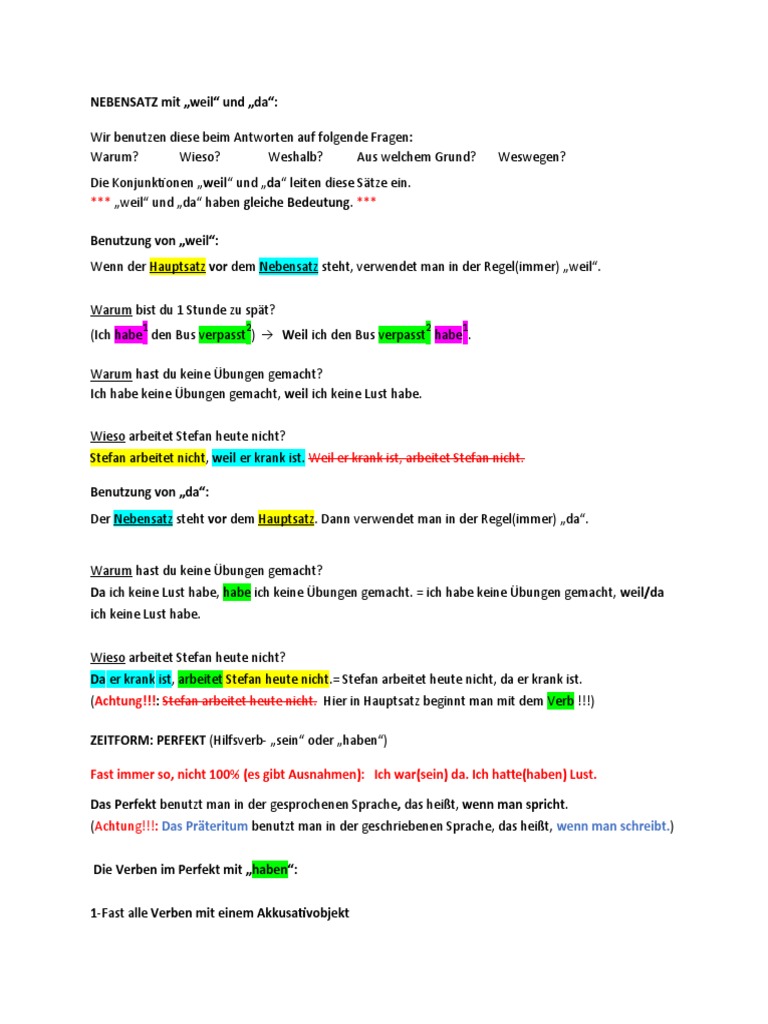 *** „weil“ und „da“ haben gleiche Bedeutung. ***