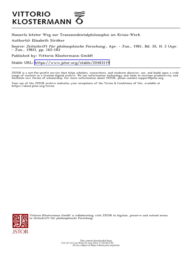 HUSSERLS LETZTER WEG ZUR TRANSZENDENTALPHILOSOPHIE 183