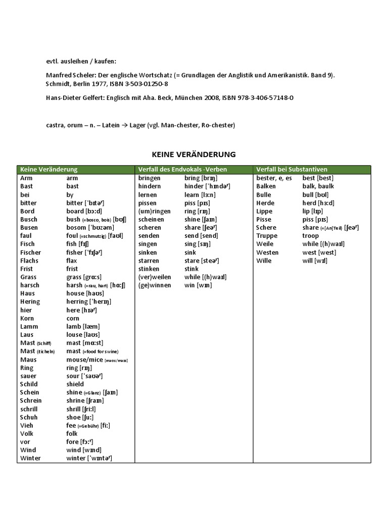 Keine Veränderung Verfall des Endvokals -Verben Verfall bei Substantiven