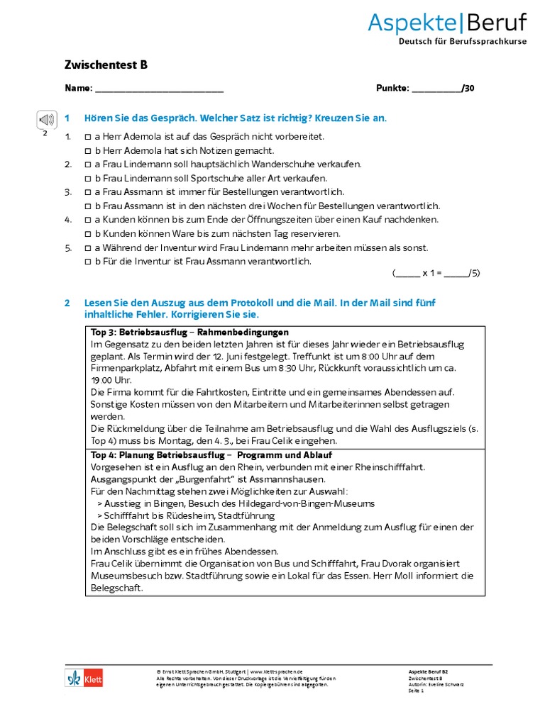 © Ernst Klett Sprachen GmbH, Stuttgart | www.klett-sprachen.de Aspekte Beruf B2