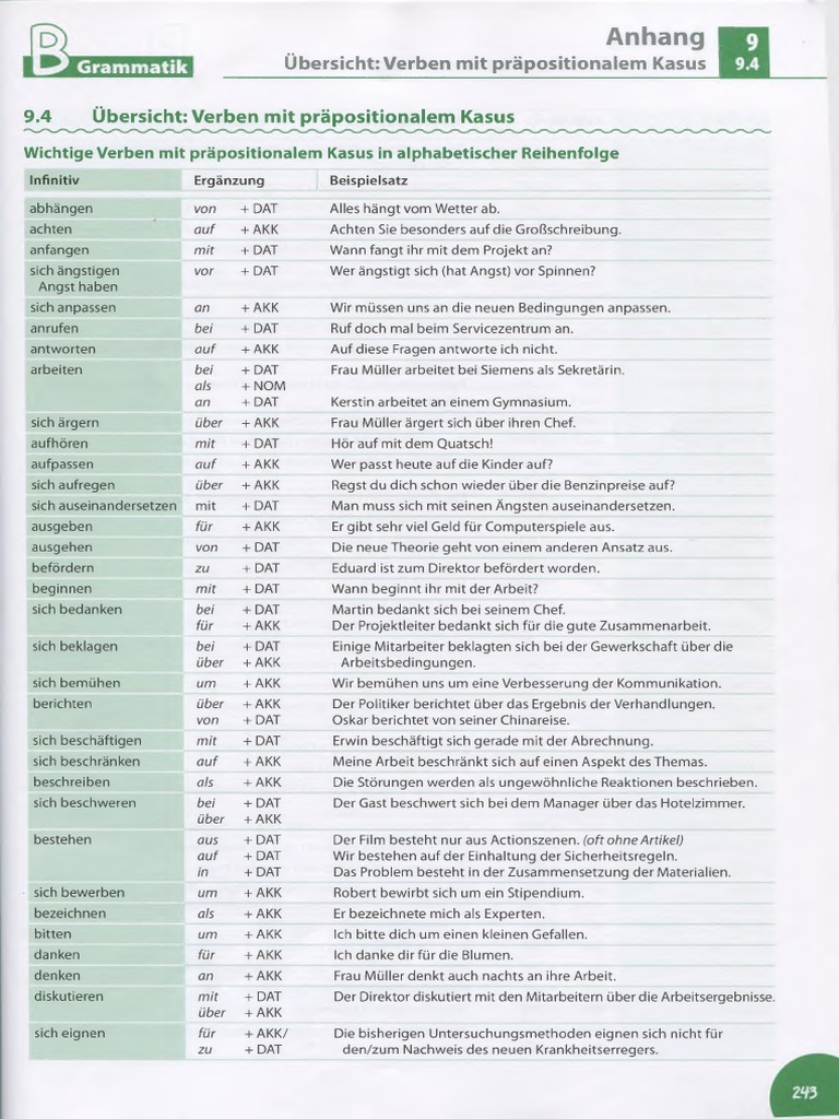 9.4 Übersicht: Verben m it präpositionalem Kasus