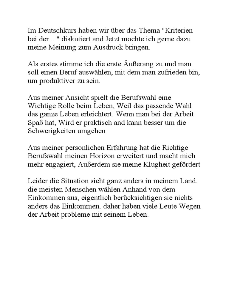 Aus meiner Ansicht spielt die Berufswahl eine