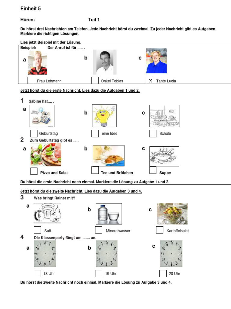 Jetzt hörst du die dritte Nachricht. Lies dazu die Aufgaben 5 und 6.