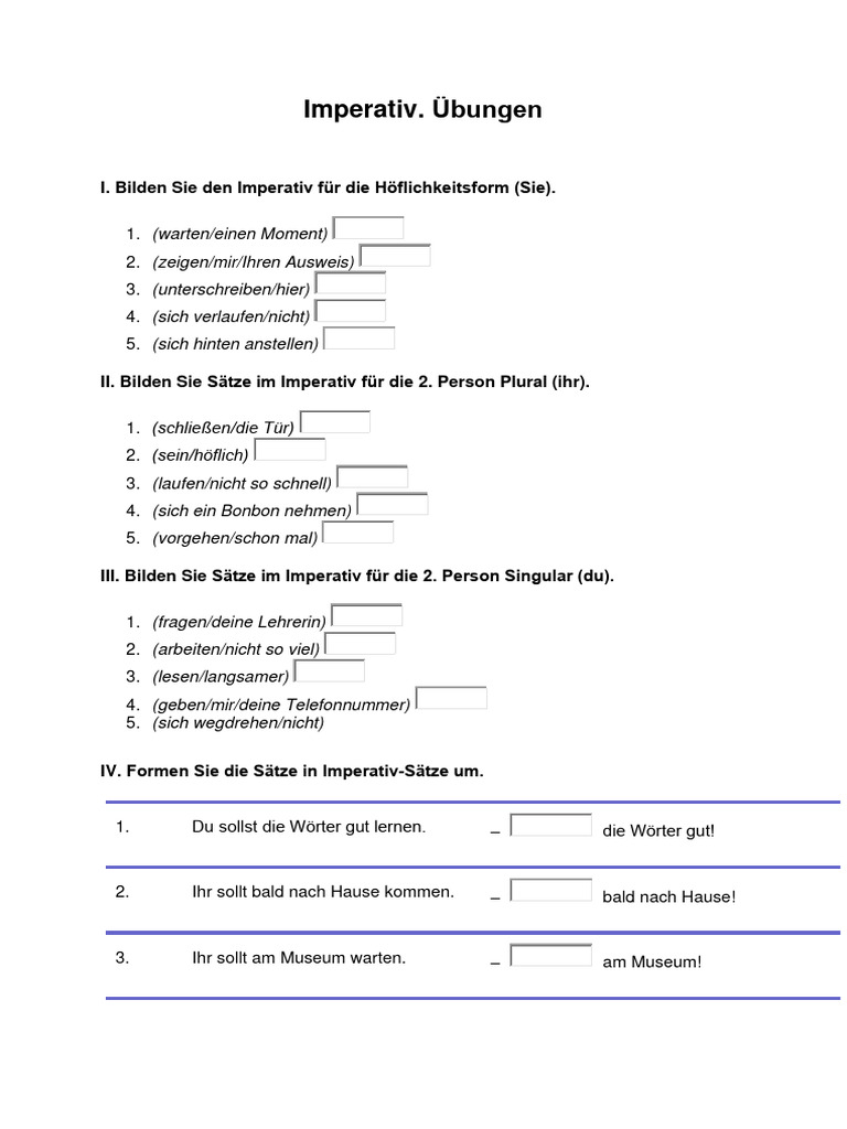 IV. Formen Sie die Sätze in Imperativ-Sätze um.