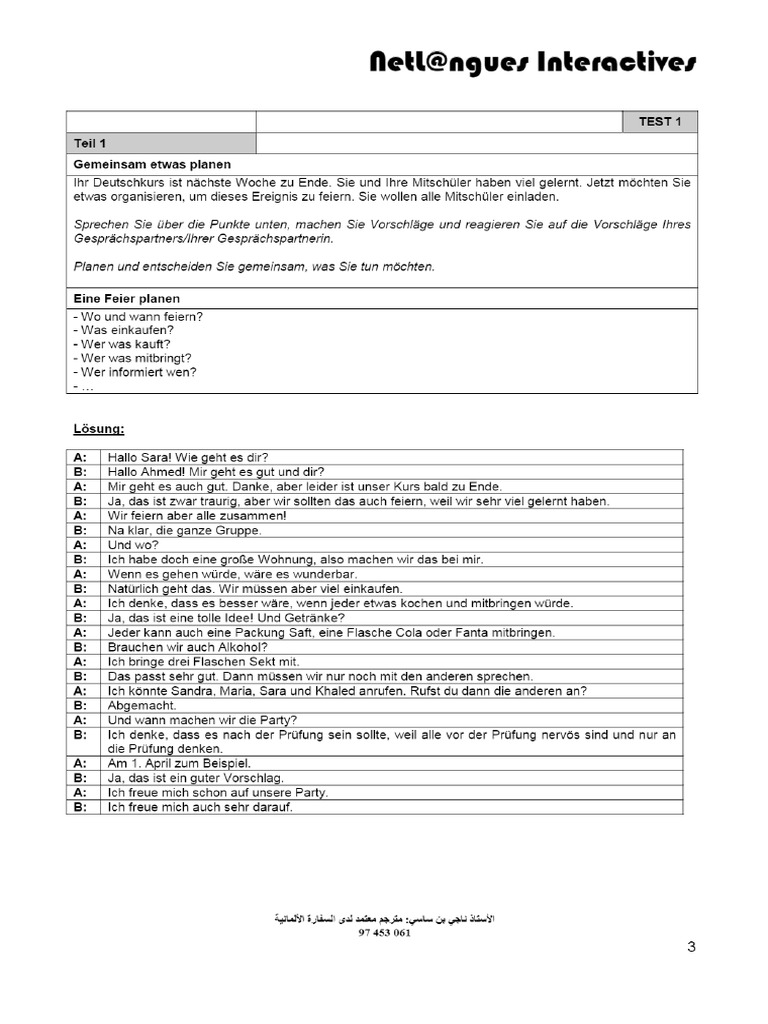Thr Deutschkurs ist nachste Woche 2u Ende. Sie und Ihre MitschUler haben viel gelemnt. Jetzt méchten Sie