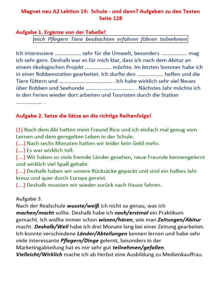 Magnet neu A2 Lektion 19: Schule - und dann?