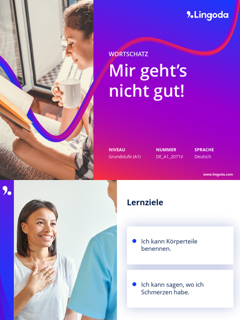 Was hast du denn? Mein … tut weh. Gute Besserung! Ich habe …