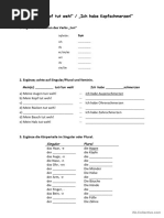 ● Mein Bauch tut weh. (Singular) ABER: Meine Ohren tun weh. (Plural)