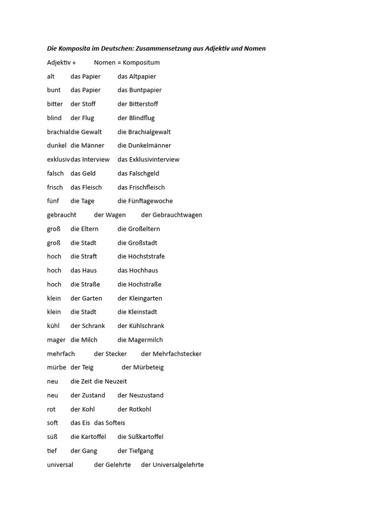 Die Komposita im Deutschen: Zusammensetzung aus Adjektiv und Nomen