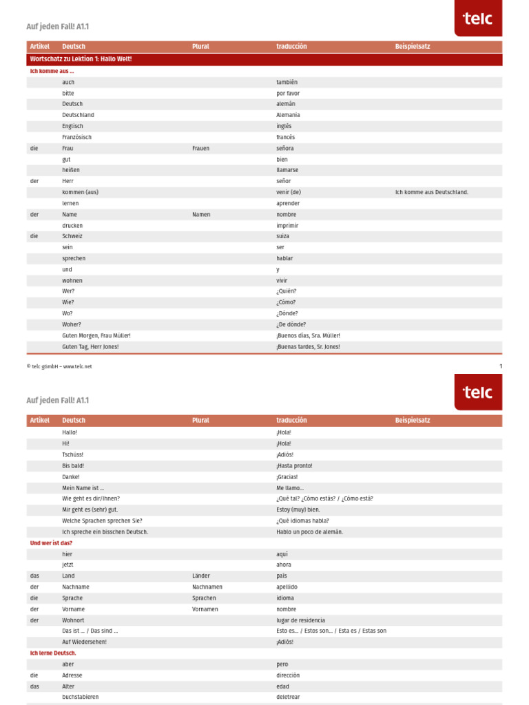Wortschatz zu Lektion 2: Im Deutschkurs