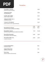 Das Dokument listet verschiedene Pizzagerichte und ihre Zutaten sowie Preise auf. Es handelt sich um die Speisekarte einer Pizzeria mit über 20 Pizzasorten.