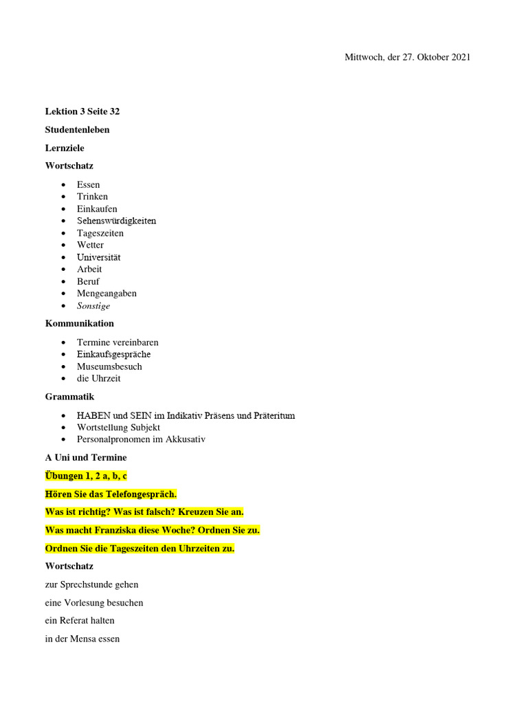 6. Um 13 Uhr hat Karla Deutschunterricht.