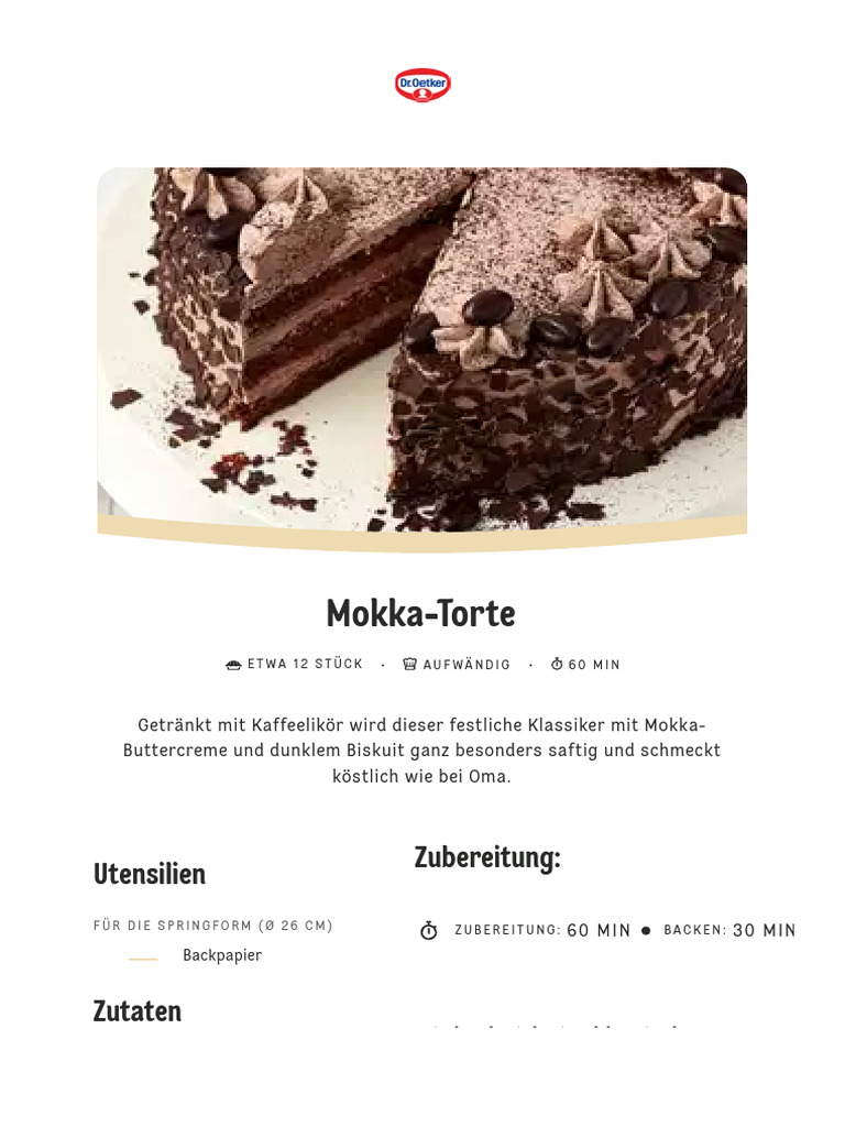 Dr. Oetker Mokkabohnen der Torte spritzen und