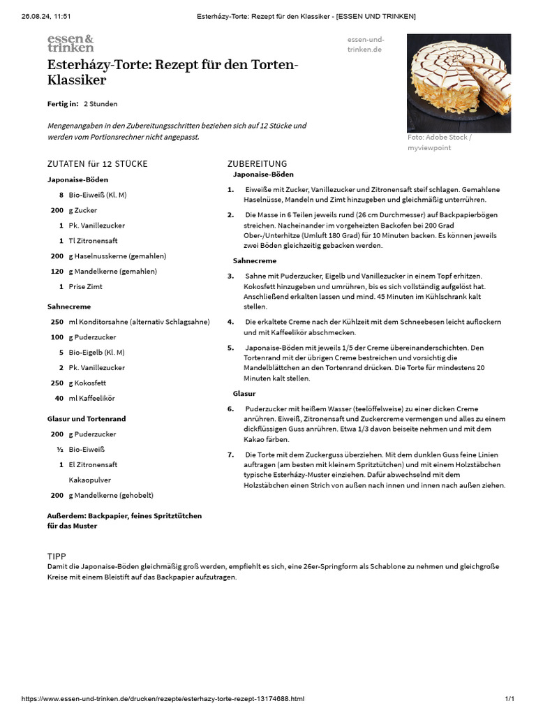 24, 11:51 Esterházy-Torte: Rezept für den Klassiker - [ESSEN UND TRINKEN]