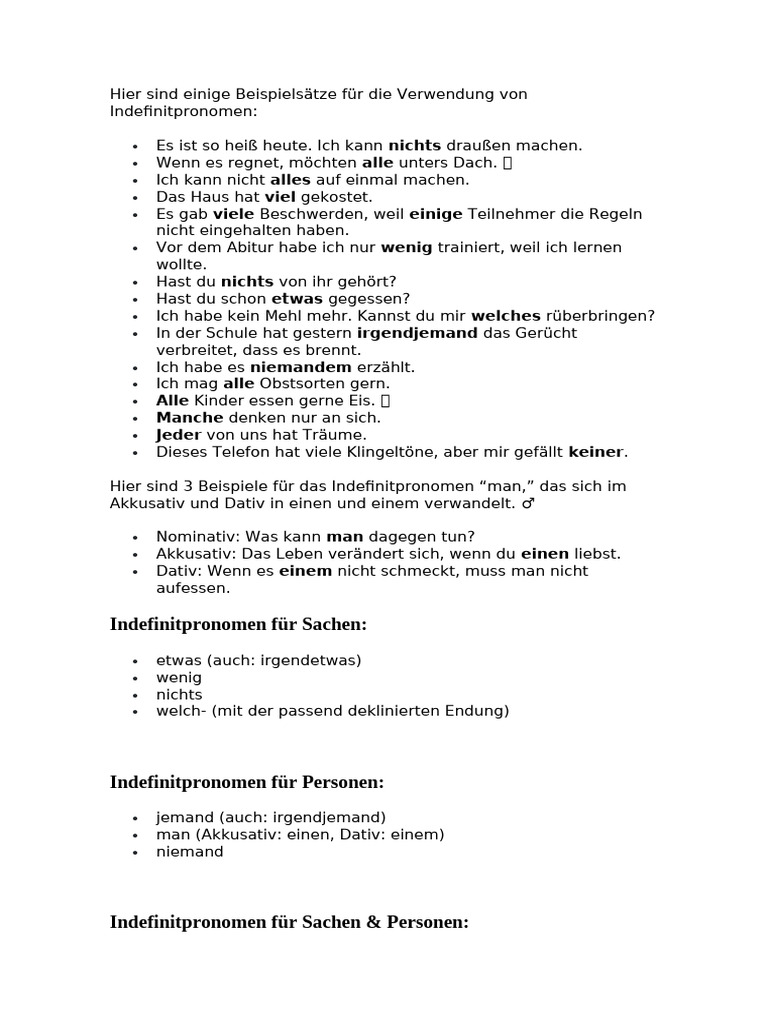 Indefinitpronomen für Sachen & Personen:
