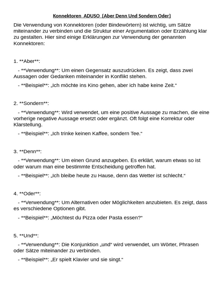 Konnektoren ADUSO {Aber Denn Und Sondern Oder}