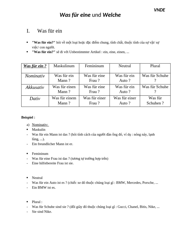 - Was für einen Mann kennst du ? (hỏi tính cách của người đàn ông đó, ví dụ : nóng nảy,