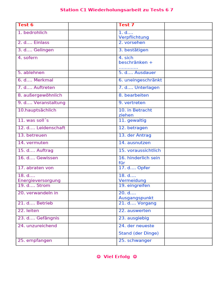 Station C1 Wiederholungsarbeit zu Tests 6 7
