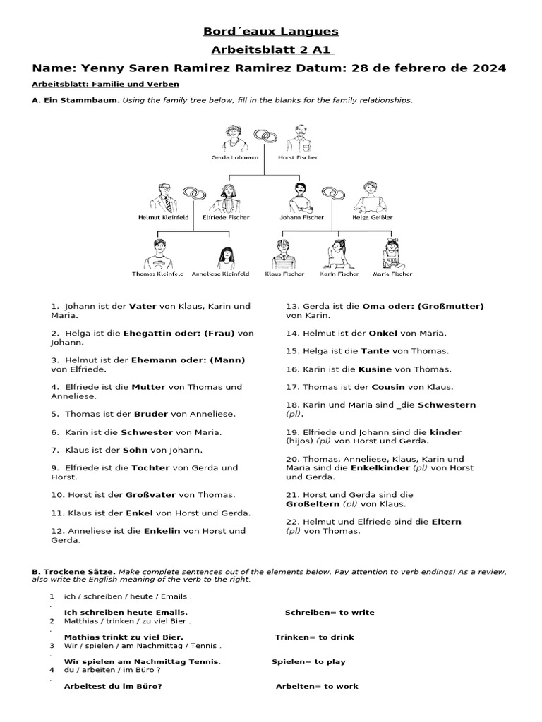 1. Johann ist der Vater von Klaus, Karin und 13. Gerda ist die Oma oder: (Großmutter)