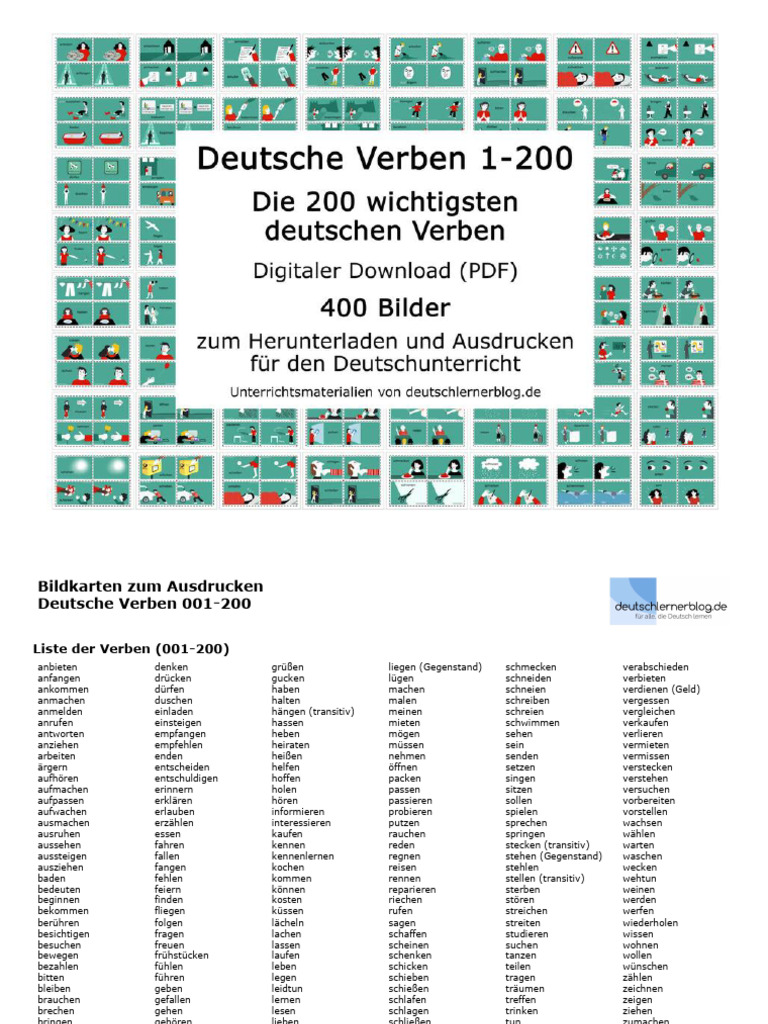 200 Deutsche Verben Bildkarten 001 200 Deutschlernerblog
