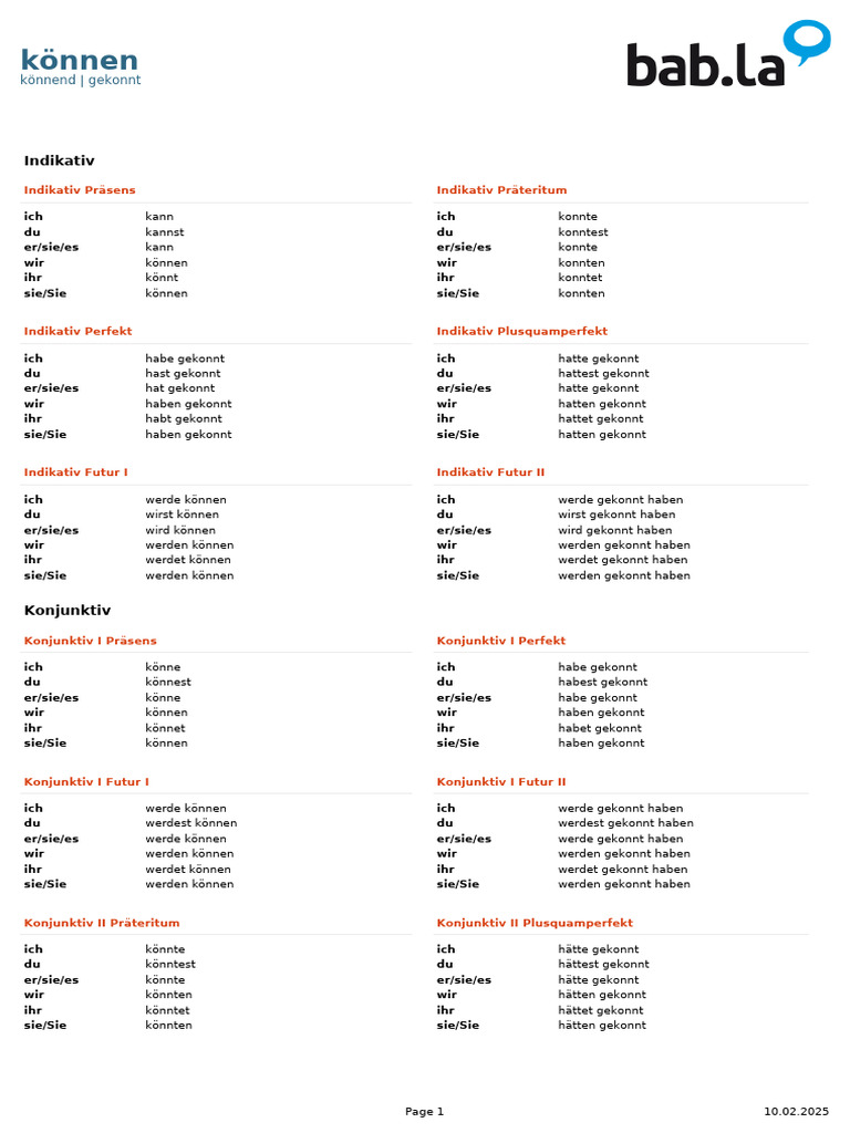 sie/Sie haben gekonnt sie/Sie hatten gekonnt