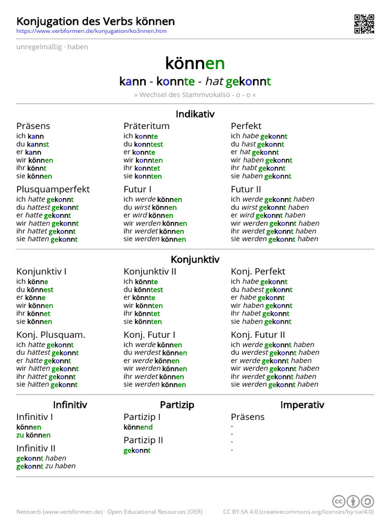 ich hätte gekonnt ich werde können ich werde gekonnt haben