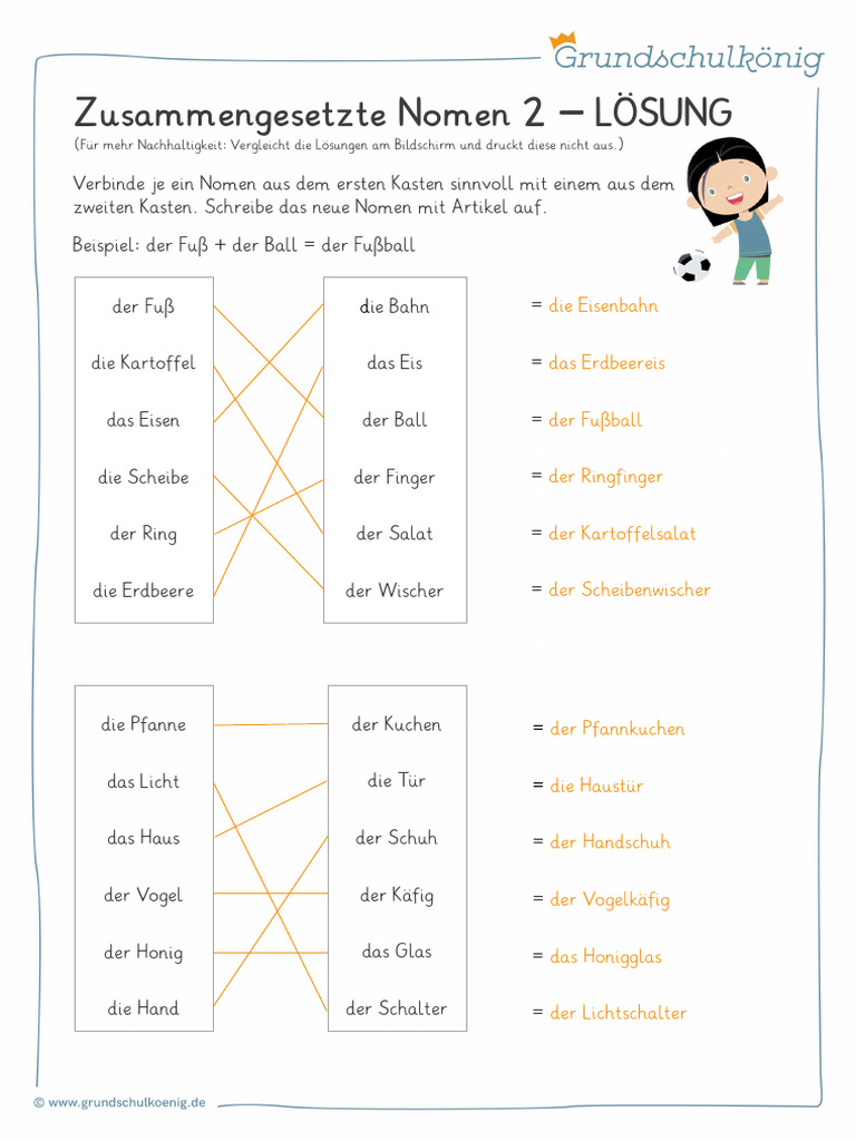 Verbinde je ein Nomen aus dem ersten Kasten sinnvoll mit einem aus dem