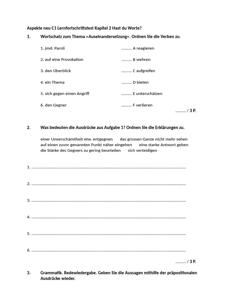 Aspekte neu C1 Lernfortschrittstest Kapitel 2 Hast du Worte?