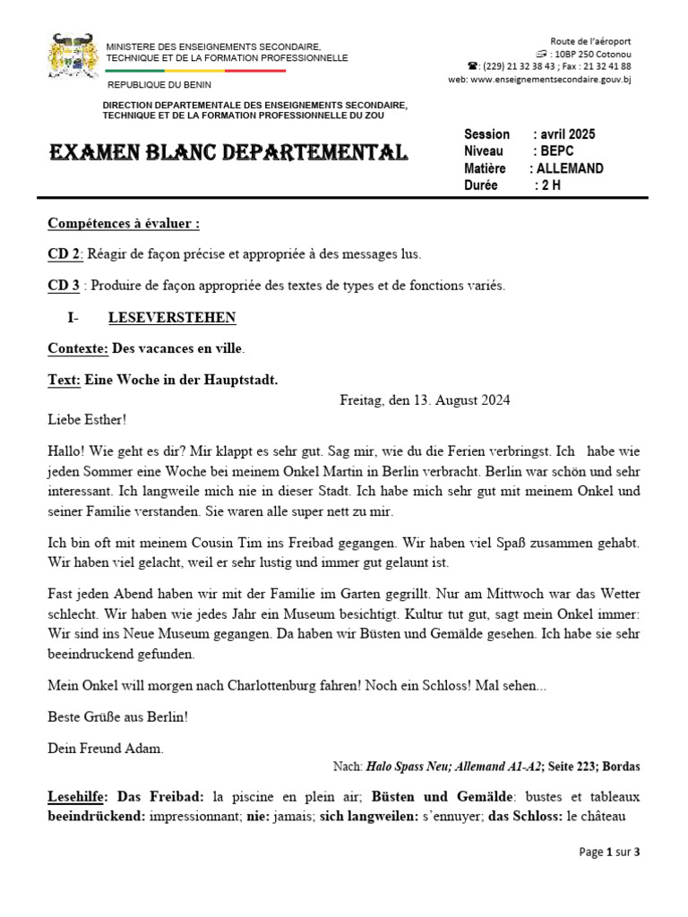 EXAMEN-BLANC DEPARTEMENTAL DES COLLINES, SESSION DE MARS 2025