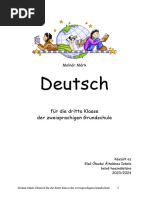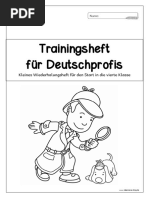 Das Dokument ist ein Trainingsheft für Deutschprofis, das Schülern der dritten Klasse hilft, ihr Wissen über Vokale, Konsonanten, Silben, Satzarten, Nomen, Verben und Adjektive zu vertiefen. Es enthält verschiedene Übungen, die das Lesen, Schreiben und die Rechtschreibung fördern. Zudem werden die Schüler dazu angeregt, ihre Kenntnisse über das Alphabet und die Bildung von zusammengesetzten Nomen zu erweitern.