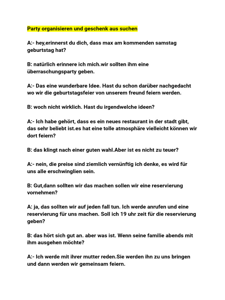 A- Perfekt. Ich freue mich schon auf die Party.