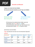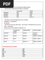Unbestimmtartikel in Nominativ , Akkusativ und Dativ :