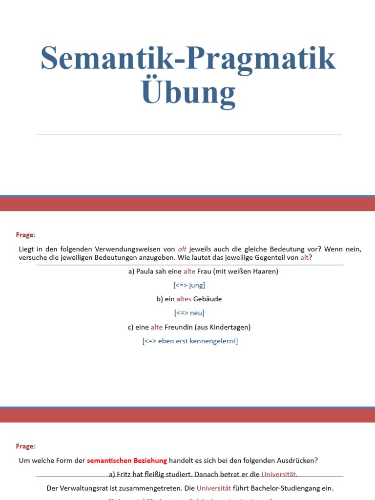 Um welche Form der semantischen Beziehung handelt es sich bei den folgenden Ausdrücken?