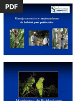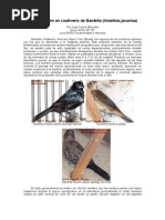 un ejemplar por da, las variaciones en las cantidades pueden depender de la talla del ave y de la condicin ambiental en que se encuentra. Aves frugvoras e insectvoras Con estos trminos nos referimos a especies que en vida libre se alimentan de insectos y de frutas, y se pueden adaptar dietas sin problemas en cautiverio. Algunas especies mexicanas representativas de este grupo son: clarn (Myadestes unicolor), jilguero (Myadestes obscurus), cenzontle (Mimus polyglottos), cuitlacoche (gnero Toxostoma), tngaras (gneros Piranga, Thraupis, Euphonias, Chiorophonia, Cyanerpes), Primavera (gnero Turdus), Momotos (gnero Momotus), algunas especies de carpinteros del gnero Melanerpes, calandrias (gnero Icterus). Frmula Pltano macho molido Huevo hervido (clara y yema) Alimento balanceado para pollo Tenebrio vivo